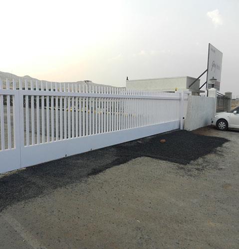 Motorized rolling shutters and compound gate